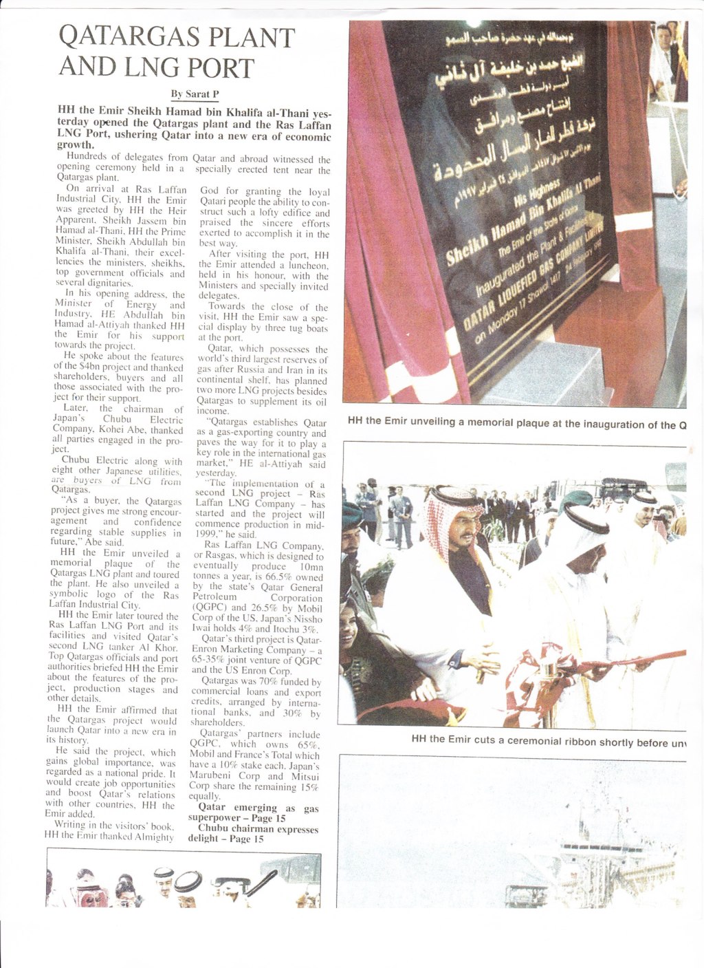 In less than an hour, the Emir will formally inaugurate Qatargas, the world’s largest liquefied natural gas (LNG) plant in Ras Laffan, a built-from-the-scratch port and industrial city, 43 miles northeast of Qatar’s capital, Doha.